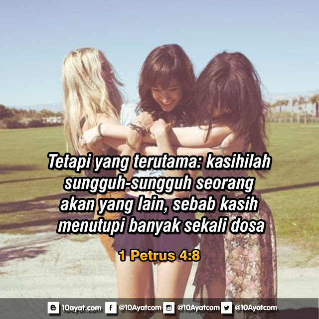 Tetapi yang terutama: kasihilah sungguh-sungguh seorang akan yang lain, sebab kasih menutupi banyak sekali dosa.