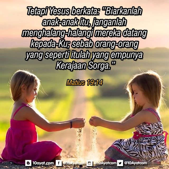 Tetapi Yesus berkata: ”Biarkanlah anak-anak itu, janganlah menghalang-halangi mereka datang kepada-Ku; sebab orang-orang yang seperti itulah yang empunya Kerajaan Sorga.”