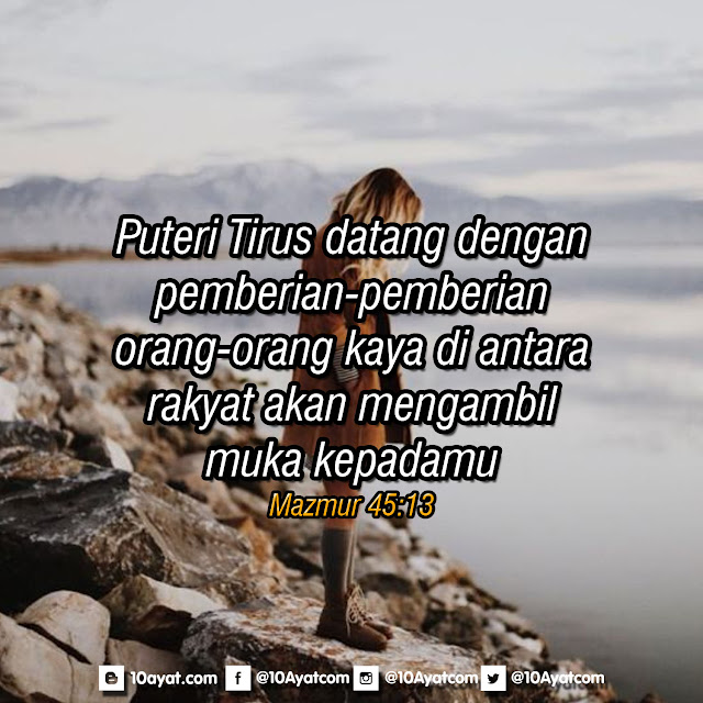 Puteri Tirus datang dengan pemberian-pemberian; orang-orang kaya di antara rakyat akan mengambil muka kepadamu.