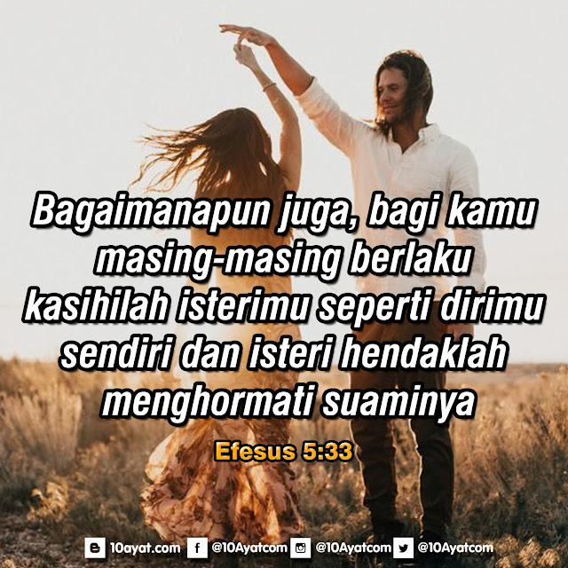 Bagaimanapun juga, bagi kamu masing-masing berlaku: kasihilah isterimu seperti dirimu sendiri dan isteri hendaklah menghormati suaminya.