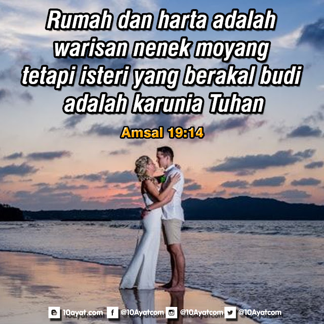 Rumah dan harta adalah warisan nenek moyang, tetapi isteri yang berakal budi adalah karunia Tuhan.