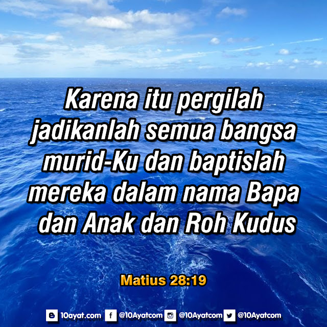 Karena itu pergilah, jadikanlah semua bangsa murid-Ku dan baptislah mereka dalam nama Bapa dan Anak dan Roh Kudus,