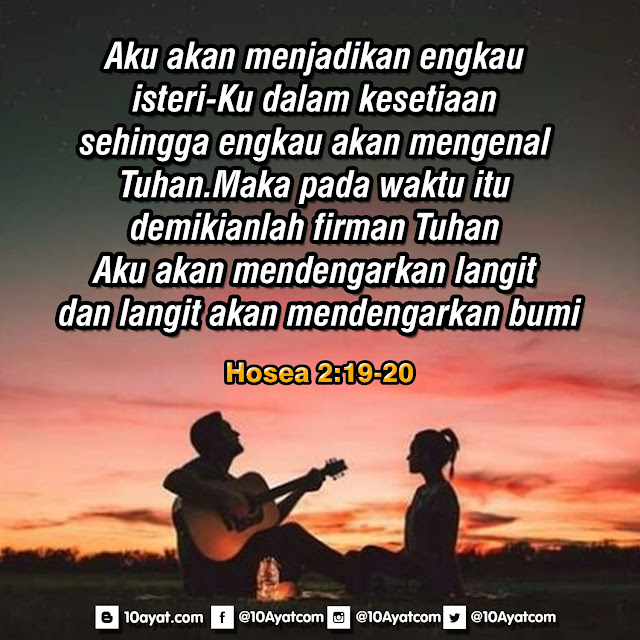 Aku akan menjadikan engkau isteri-Ku dalam kesetiaan, sehingga engkau akan mengenal Tuhan. Maka pada waktu itu, demikianlah firman Tuhan, Aku akan mendengarkan langit, dan langit akan mendengarkan bumi.