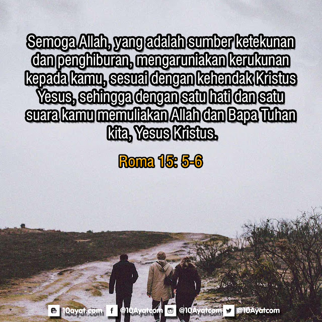 Semoga Allah, yang adalah sumber ketekunan dan penghiburan, mengaruniakan kerukunan kepada kamu, sesuai dengan kehendak Kristus Yesus, sehingga dengan satu hati dan satu suara kamu memuliakan Allah dan Bapa Tuhan kita, Yesus Kristus.
