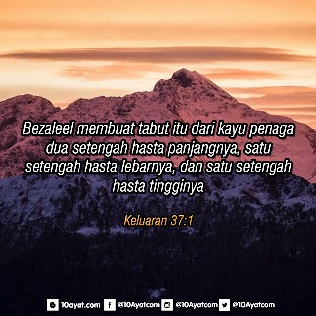 Bezaleel membuat tabut itu dari kayu penaga, dua setengah hasta panjangnya, satu setengah hasta lebarnya, dan satu setengah hasta tingginya.