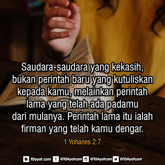 Saudara-saudara yang kekasih, bukan perintah baru yang kutuliskan kepada kamu, melainkan perintah lama yang telah ada padamu dari mulanya. Perintah lama itu ialah firman yang telah kamu dengar.