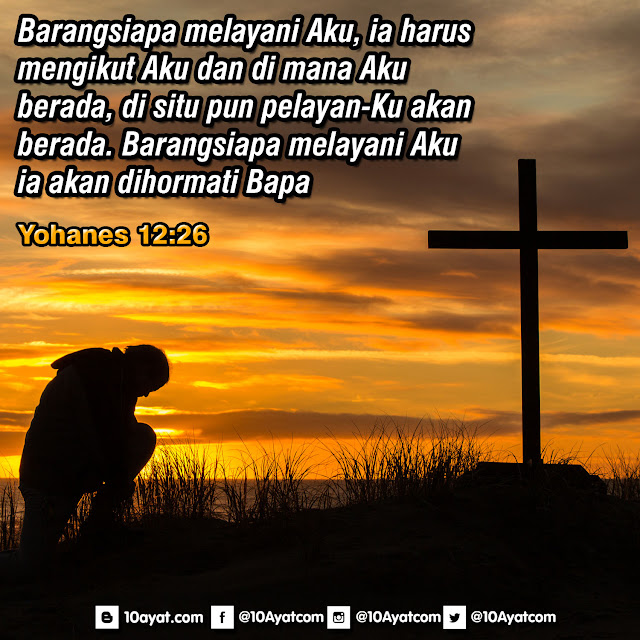 Barangsiapa melayani Aku, ia harus mengikut Aku dan di mana Aku berada, di situ pun pelayan-Ku akan berada. Barangsiapa melayani Aku, ia akan dihormati Bapa.