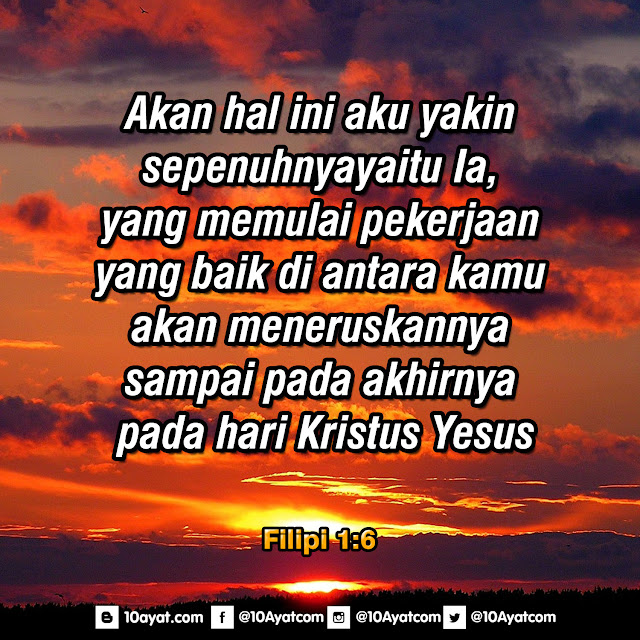 Akan hal ini aku yakin sepenuhnya, yaitu Ia, yang memulai pekerjaan yang baik di antara kamu, akan meneruskannya sampai pada akhirnya pada hari Kristus Yesus.