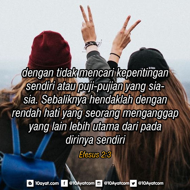 dengan tidak mencari kepentingan sendiri atau puji-pujian yang sia-sia. Sebaliknya hendaklah dengan rendah hati yang seorang menganggap yang lain lebih utama dari pada dirinya sendiri;