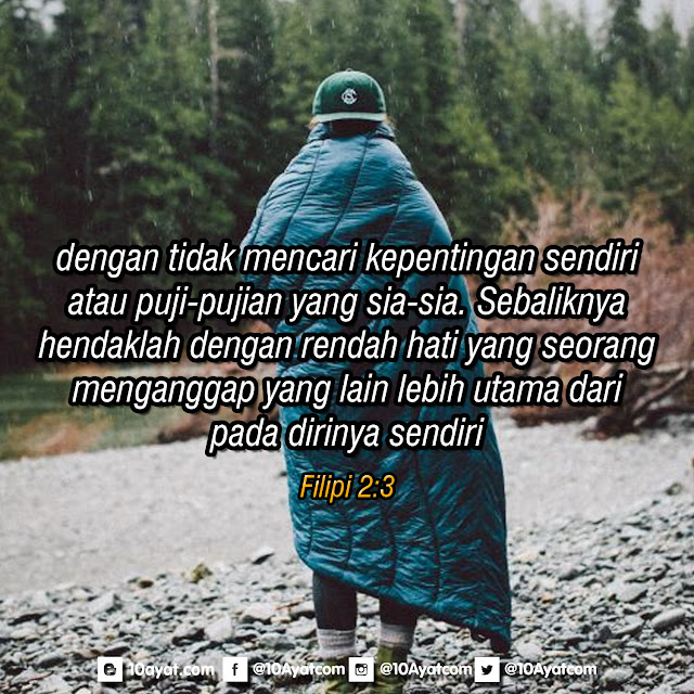 dengan tidak mencari kepentingan sendiri atau puji-pujian yang sia-sia. Sebaliknya hendaklah dengan rendah hati yang seorang menganggap yang lain lebih utama dari pada dirinya sendiri;