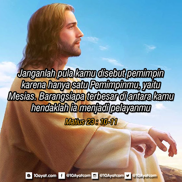 Janganlah pula kamu disebut pemimpin, karena hanya satu Pemimpinmu, yaitu Mesias. Barangsiapa terbesar di antara kamu, hendaklah ia menjadi pelayanmu.