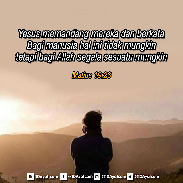 Yesus memandang mereka dan berkata: ”Bagi manusia hal ini tidak mungkin, tetapi bagi Allah segala sesuatu mungkin.”